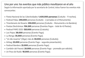 El Festival Palau Rosario 2025 se consolidó como uno de los eventos de mayor convocatoria en la ciudad santafesina durante el último año, al posicionarse como el segundo espectáculo con más público entre todos los realizados en Rosario. El dato surge del análisis del movimiento de asistencia a eventos artísticos y musicales en la ciudad, donde el festival de buena música y buenas noticias registró una cifra destacada de asistentes.